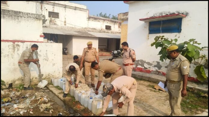 अम्बेडकरनगर। पुलिस अधीक्षक अभिजित आर शंकर के निर्देशन और अपर पुलिस अधीक्षक पश्चिमी के पर्यवेक्षण में चलाए जा रहे ऑपरेशन क्लीन अभियान के तहत टांडा पुलिस ने गुरुवार को एक बड़ी कार्रवाई करते हुए अवैध शराब कारोबारियों के खिलाफ सख्त कदम उठाया। थाना कोतवाली टांडा पुलिस टीम ने आबकारी अधिनियम के तहत दर्ज कुल 33 अभियोगों में बरामद की गई 385 लीटर अवैध कच्ची शराब को न्यायालय के आदेश के अनुपालन में विधिवत रूप से नष्ट किया। यह कार्रवाई 23 अक्टूबर 2025 को माननीय मुख्य न्यायिक मजिस्ट्रेट द्वारा जारी आदेश दिनांक 18 अक्टूबर 2025 के आधार पर की गई।
