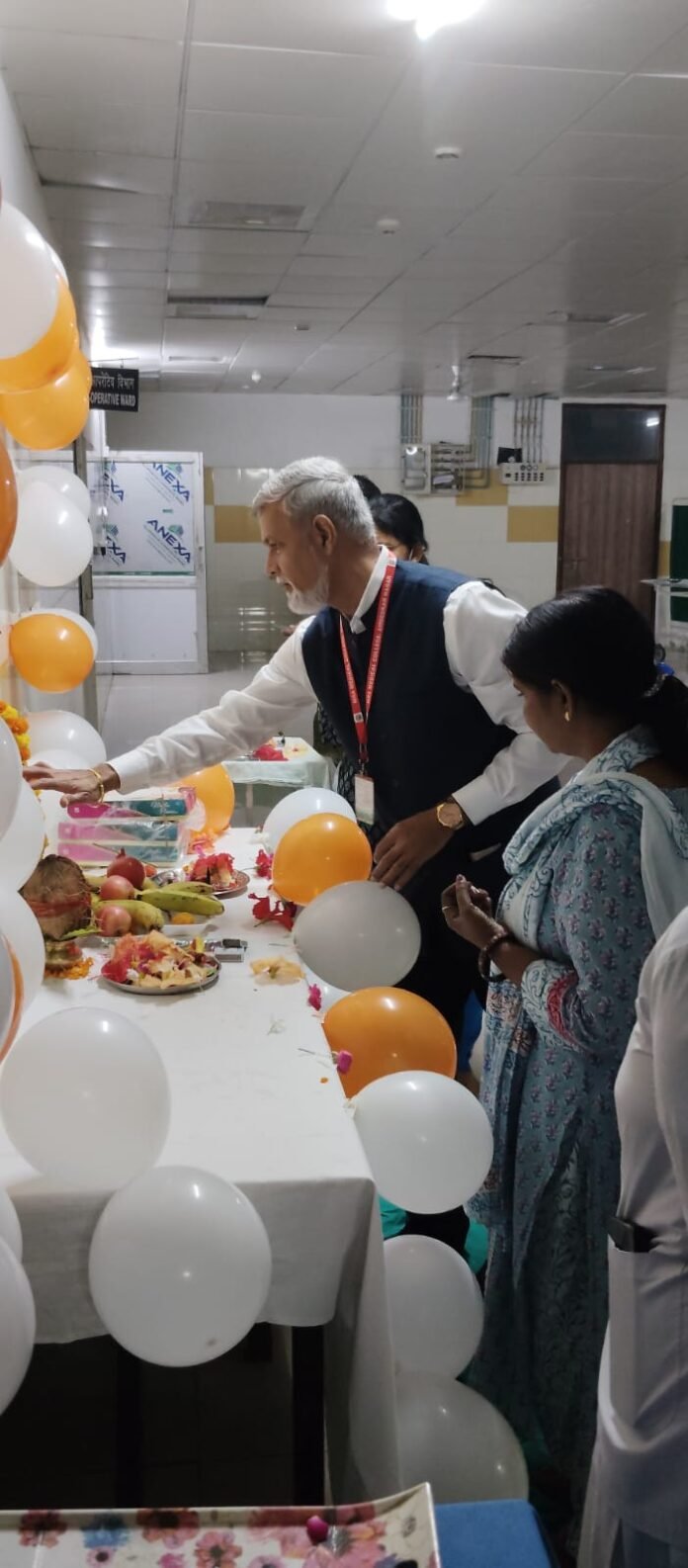 कैम्प के उपरांत यह काफिला भारत के यशस्वी प्रधानमंत्री श्री नरेंद्र मोदी जी के संबोधन का सजीव प्रसारण सुनने के लिऐ दोपहर 12 बजे से सरदार वल्लभ भाई पटेल प्रेक्षागृह में पहुंचा जहां डा आशुतोष सिंह नोडल आयुष्मान भारत आंबेडकर नगर के सहयोग से भारत के यशस्वी प्रधानमंत्री श्री नरेंद्र मोदी जी के संबोधन को सभी सुना और उसके बाद मुख्य चिकित्सा अधीक्षक अम्बेडकर नगर, प्रधानाचार्य डॉ मुकेश यादव, जिला अध्यक्ष भाजपा श्री त्रयंबक तिवारी, विधायक कटेहरी श्री धर्मराज निषाद ने क्रमशः अपने वक्तव्य दिए और प्रधानमंत्री जी को जन्मदिवस की बधाई के साथ उनके लंबी उम्र की कामना की। कार्यक्रम के अंत में माननीय मंत्री जी ने सभी को बधाई देने के साथ साथ टी बी के मरीजों को अक्षय पोटली का वितरण किया और प्रधानमंत्री जी के दीर्घायु होने की कामना की। उक्त सभी कार्यक्रम के साथ ही मेडिकल कॉलेज के ऑपरेशन थिएटर, रेडियोलॉजी विभाग और सेंट्रल पैथोलॉजी विभाग में प्रधानाचार्य डॉ मुकेश यादव जी के द्वारा भगवान विश्वकर्मा जी की पूजा अर्चना भी की गई।