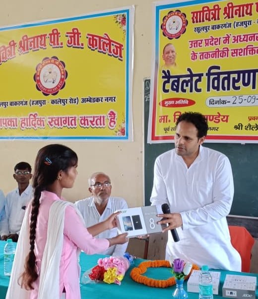 हमें टैबलेट का सदुपयोग करते हुए अपने ज्ञान को बढ़ाना चाहिए साथ ही पुस्तकों का भी अध्ययन करना चाहिए महाविद्यालय के प्रबंधक शैलेश मिश्रा ने समस्त आगंतुकों का स्वागत करते हुए छात्रों से टैबलेट के सदुपयोग की अपील किया इस अवसर पर विशिष्ट अतिथि के रूप में जगत नारायण शुक्ला प्रबंधक लल्लन जी ब्रह्मचारी इंटर कॉलेज भरतपुर नोडल अधिकारी यादवेंद्र मिश्रा सहित महाविद्यालय के शिक्षक एवं कर्मचारी उपस्थित रहे