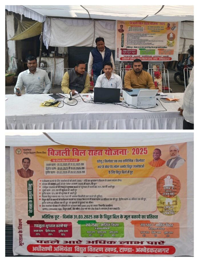 अम्बेडकर नगर के टांडा तहसील में एक दिसंबर से प्रारंभ हो रही बिजली बिल राहत योजना का सीधा लाभ आम नागरिकों और छोटे बिजली उपभोक्ताओं को मिलेगा। इस योजना का उद्देश्य प्रदेश के घरेलू और छोटे व्यावसायिक उपभोक्ताओं को बिजली बिल के बोझ से राहत देना और उन्हें एक सरल, सम्मानजनक समाधान प्रदान करना है। इस योजना का लाभ उपभोक्ता एक दिसंबर से 28 फरवरी तक उठा सकेंगे।